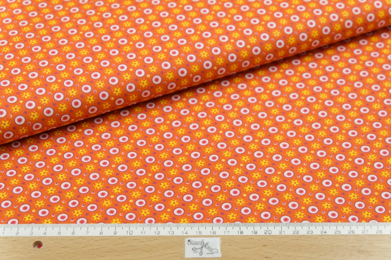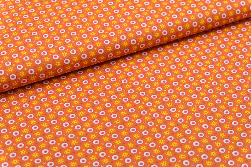 Beschreibung Feiner Baumwollpopeline Leichte Qualität Grundfarbe: warmes orange Eignet sich für Hemden, Röcke, und Blusen.