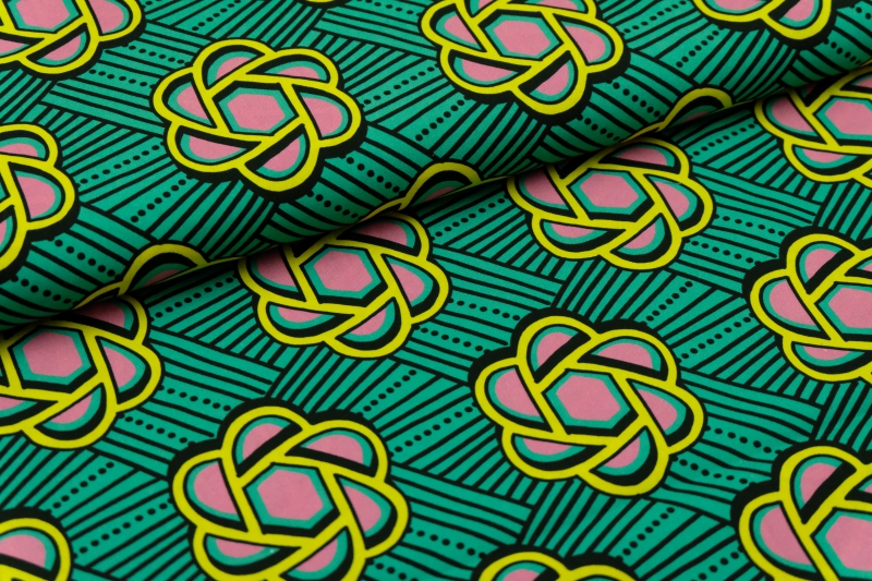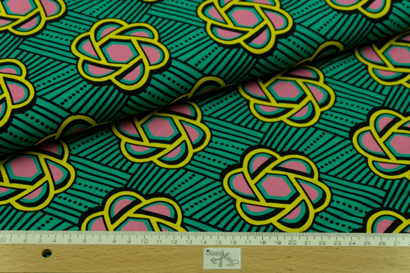 Beschreibung Leichte Qualität Grafisches Afrikamuster und Design im Waxprintstyle. Farbe: dunkles smaragd Eignet sich für Blusen und Kleider in allen Formen sehen toll aus. |