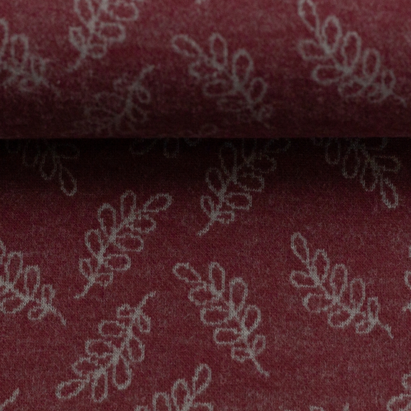 Jacquard Jersey "Cozy" Zweige bordeaux