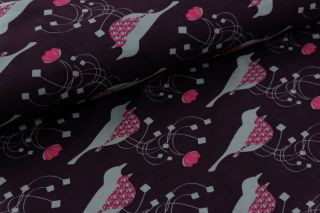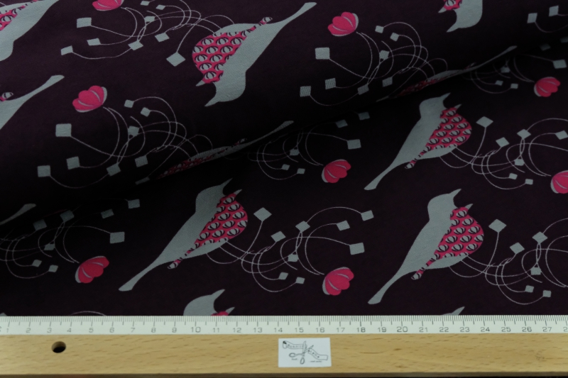 Jersey aubergine mit Vögeln