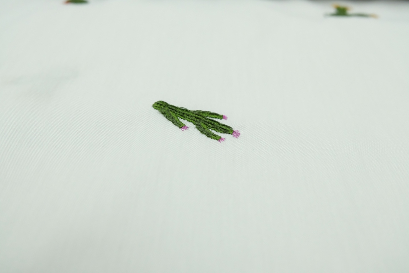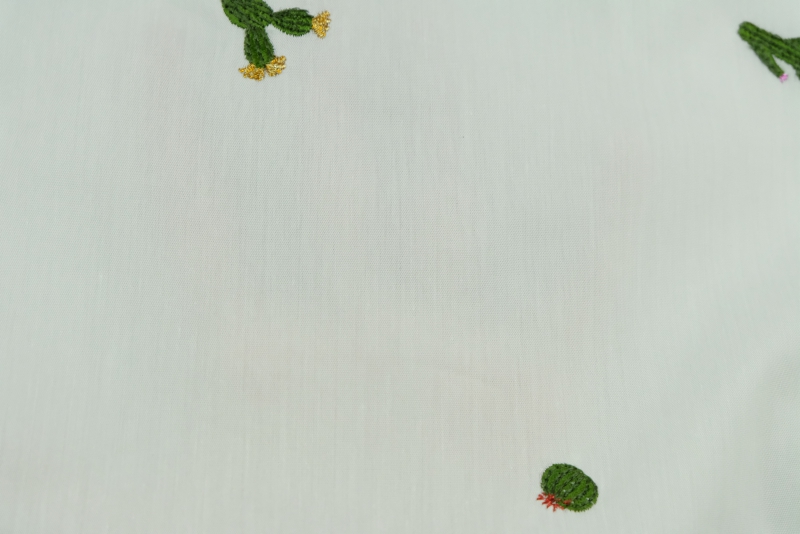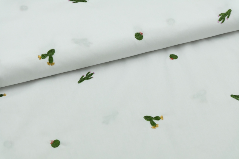 Beschreibung Leichte Qualität Feiner Baumwollbatist mit eingestickten Kakteen Grundfarbe: weiß Eignet sich für Blusen,Tunikas, Kleider, Röcke und Tücher. |