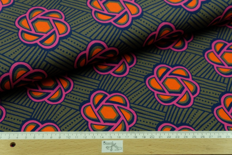 Beschreibung Mittelschwere Qualität Grafisches Afrikamuster und Design im Waxprintstyle. Grundfarbe: olive Eignet sich für Leggins, Shirts, Kleider, Röcke, Schals, Tuniken und Tops. |