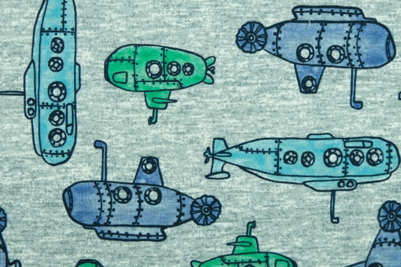 Beschreibung Dieser Sommersweat (French Terry) ist dünner als herkömmlicher Sweat aber dicker als Jersey. Grundfarbe: grau meliert Motzivgröße: U-Boote, max. 7,5 cm lang Eignet sich für Hosen, Kleider, Nachtwäsche, Loops, T-Shirts, Pumphosen, Mützen, Shorts, Leggins, Baby- und Kinderbekleidung. Der Sweat Stoff ist weich und warm und trägt sich angenehm auf der Haut. Ideal für Herbst/ Winter. |