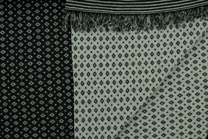 Beschreibung Leichte Qualität Grundfrabe: anthrazit und grau Die beidseitig gestreifte Fransenkante kann als Saumabschluss genutzt werden. Die Streifenkante hat ca. 3 cm lange Fransen. Der Strickstoff ist mit kleinen Rautenmuster gestrickt, Sie können beide Stoffseiten verwenden. Das zweifarbige Muster erscheint auch auf der Rückseite, diesmal ist das Farbmuster umgekehrt. Eignet sich für Schal, Poncho, Cape, Kleider, Röcke und Jacken die ausgefallen und immer sehr wertig aussehen. Einfache Accessoires wie Strickwesten, Schals und Mützen. |