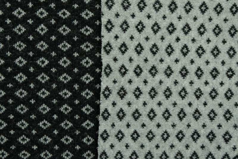 Jacquard Strick Doubleface Fransen Rauten anthrazit